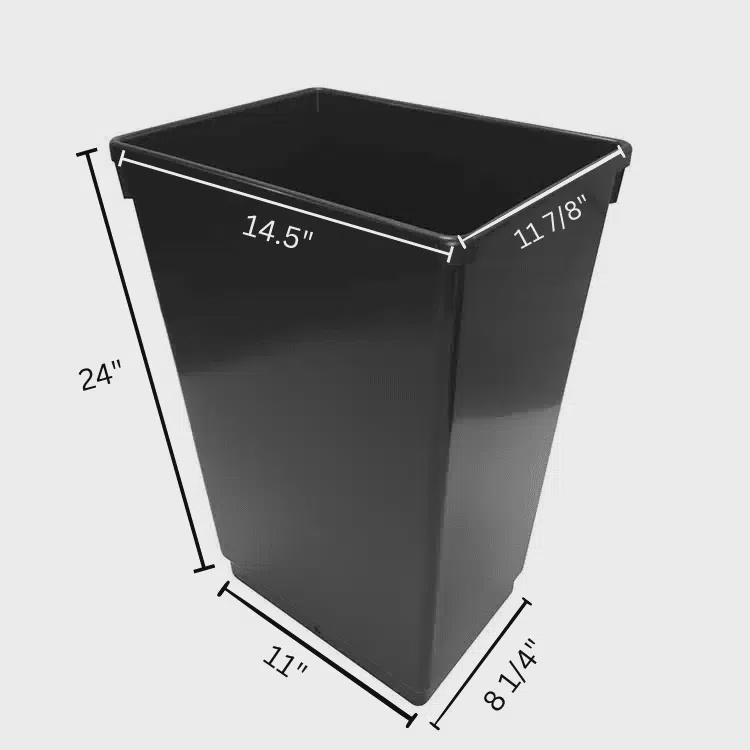 Dimensions: 24” (H) x 14.5” (W – at lid) x 11” (W – at base)