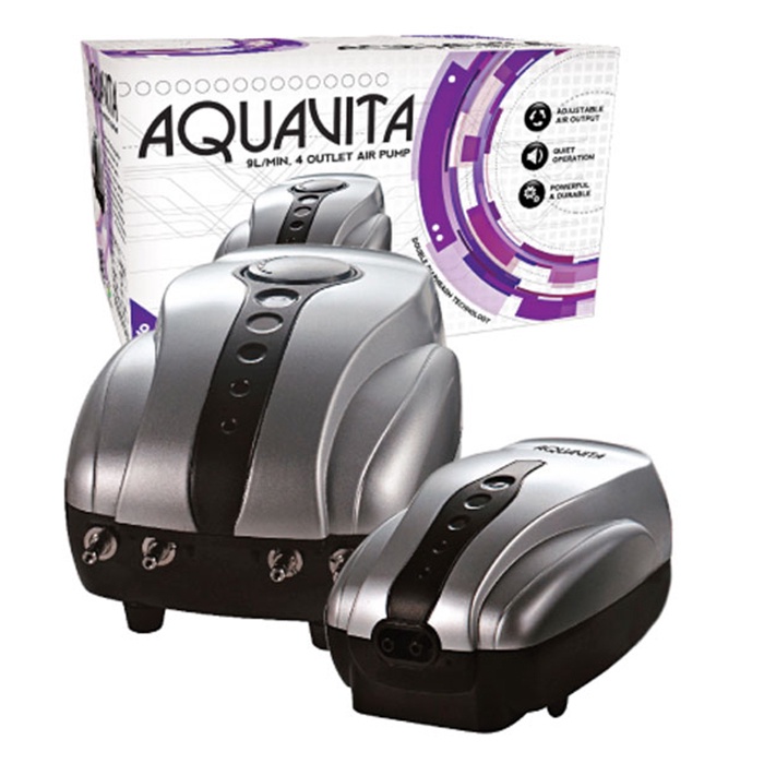 The AquaVita Air Pumps are great for adding oxygen to aquariums and hydroponic systems when used in conjunction with an air stone, especially AquaVita Air Stones. These super quiet pumps feature a double diaphragm for long lasting reliability. All models have a 5’ power cord and require a 3/16″, inner diameter hose size. 1 year manufacturer’s warranty.