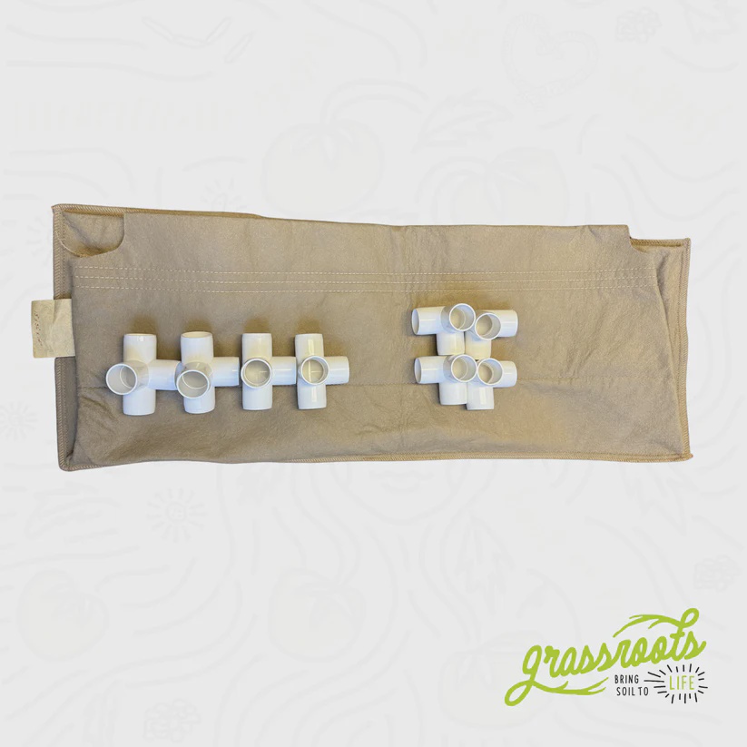 This item includes the fabric bed and basic or trellis fittings. This item doesn’t include the tray to grow system. This includes only the fabric bed and fittings. PVC pipes are not included only the fabric bed and fittings.
