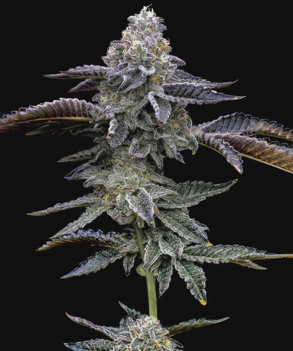 This Blue Dream strain is a grower’s delight, exhibiting robust growth and the ability to produce large, sticky buds that are a visual treat with their light green color accented by blue and deep purple hues. The buds are dense and resinous, hinting at the heavy yields this strain is famous for.