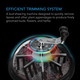 • Includes a quadruple-edged straight blade for wet trimming and a serrated blade for dry trimming.