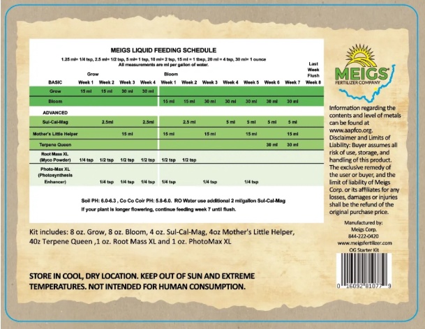 Application: Mix 1-2 tbsp per gallon of water. Apply once a week. (See Meigs Fertilizer Feeding Schedule)