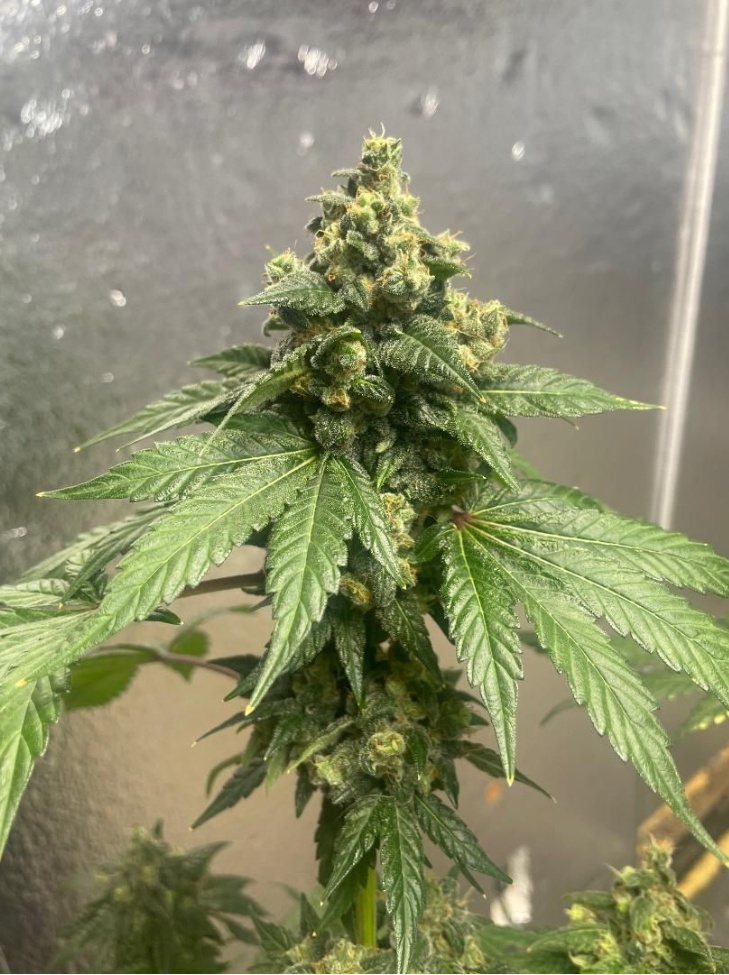 this tall high yielding strain is a cross between g13 skunk and lemon g . It produces large dense colas. Heavy skunk dominance with a chance of lemon. Not topping can produce those large pop bottle size colas. But topping doesn’t slow them down at all. Expect long flower times and high yields