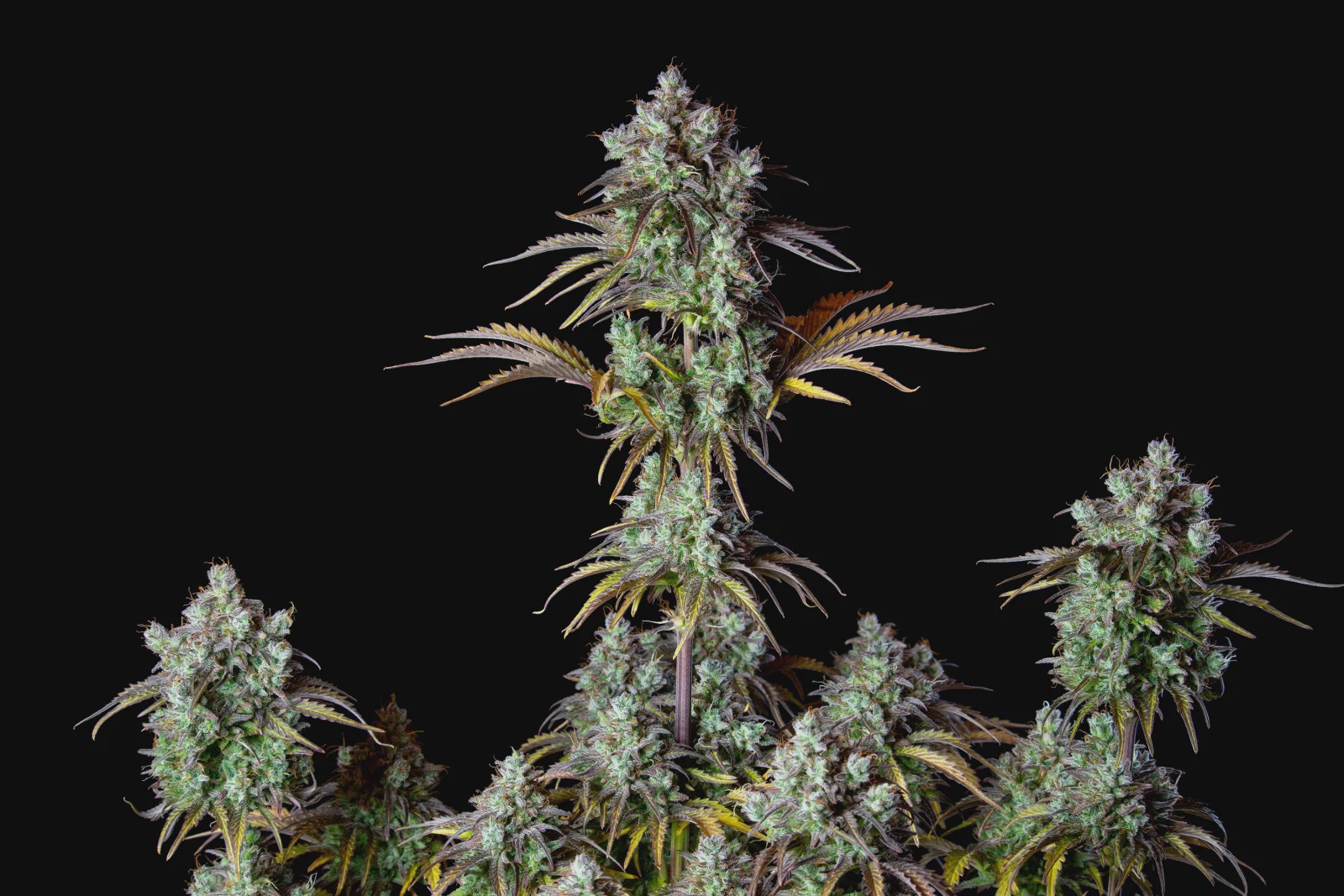 Thanks to the fine genetic mix, this strain won’t be afraid of showing its hybrid vigor and can produce up to 500gr/m2 of prime-quality buds; This large-sized variety grows really sturdy, with a solid stem and side branching that give this strain a  stocky appearance while still reaching up to 120cm. The tall main stem and long side branches grow multiple flowering sites on the upper part with not too many small fan leaves with a few fingers.