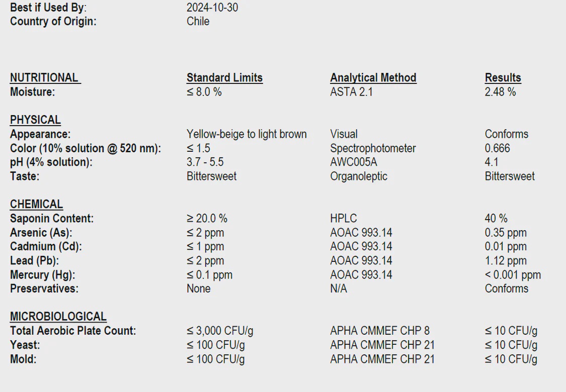 BEWARE: There are many low quality versions available because of a recent shortage from premium suppliers. (The industry went crazy because they use the Quillaja in Vaccines) Because of the shortage in the market place, we went to great lengths to secure and only provide the highest quality tested and verified Quillaja on the market. You’ll be happy to know both versions are crafted from rigorously tested materials. This means that both versions pass strict testing for Saponin, Heavy Metals, Pathogens and any adulterant. We are proud to offer you the original and the best.