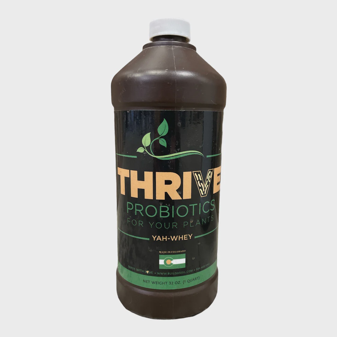YAH WHEY! When you use stabilized Kefir Whey designed by Thrive you will be simultaneously feeding the soil much needed amino proteins (Nitrogen) That will help the breakdown of nutrients and also make readily available food for your plants.