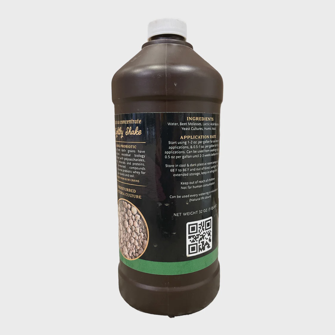 Whey from kefir grains have a complex microbial biology composition with polysaccharides, nutrients, minerals and proteins. These fermented compounds create a diverse probiotic whey for your plants and soil.