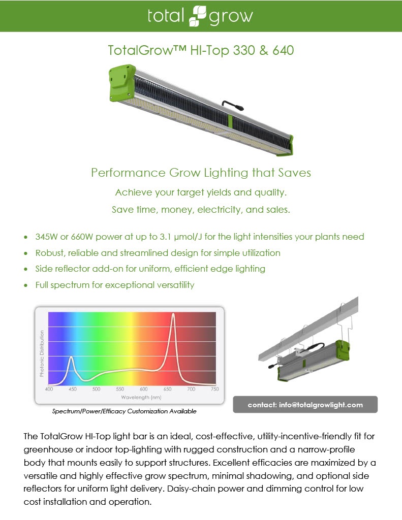 - TotalGrow™ HI-Top lights available in 330W and 640W models.