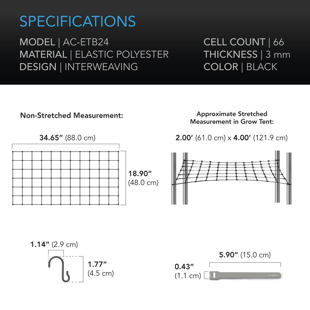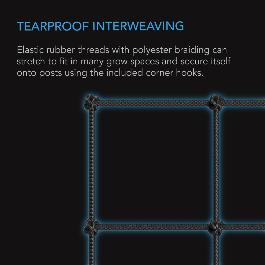 - Versatile steel hooks securely clip the height-adjustable trellis net onto your grow tent’s frame.