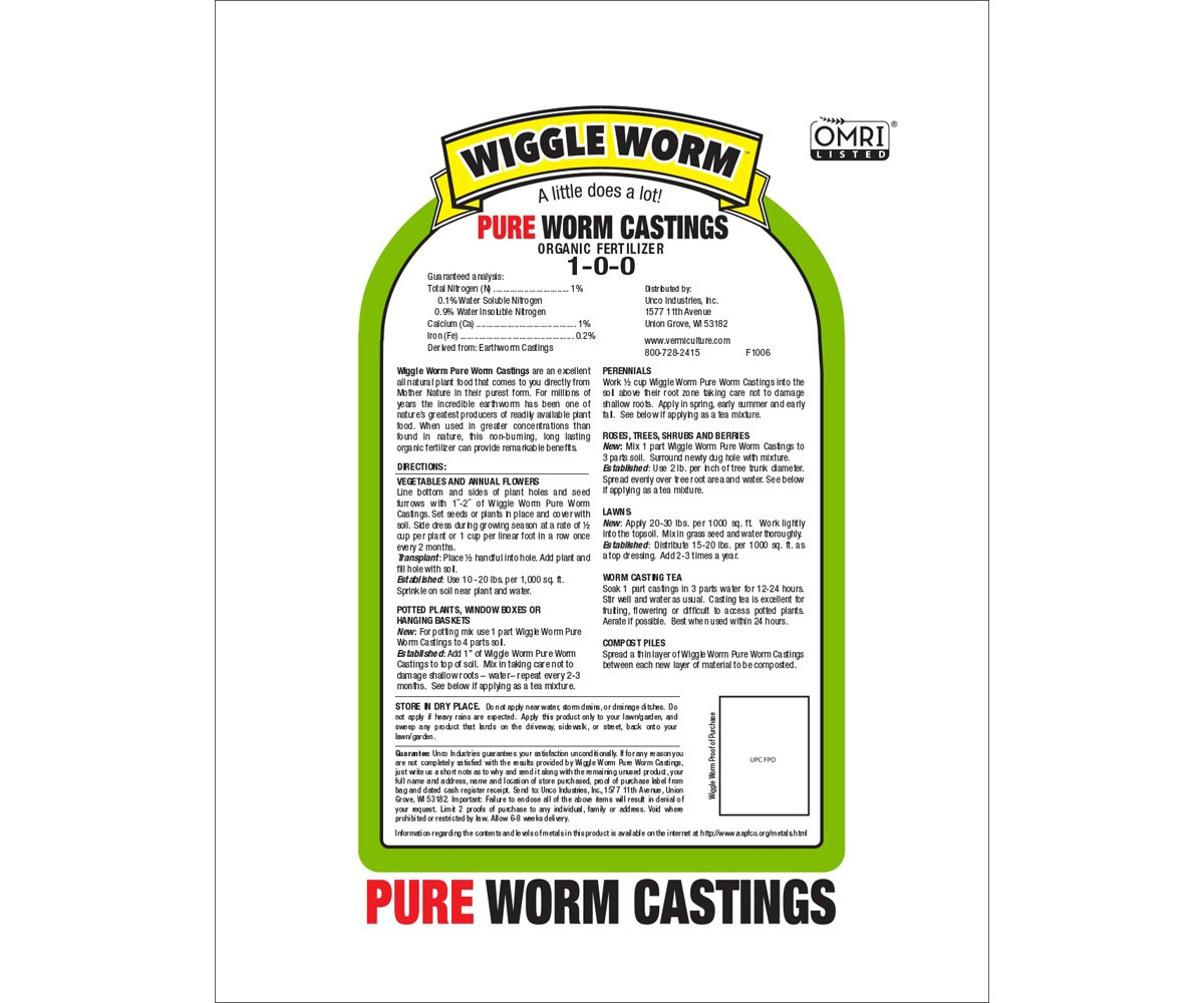 Wiggle Worm is OMRI and CDFA certified and a registered organic fertilizer.